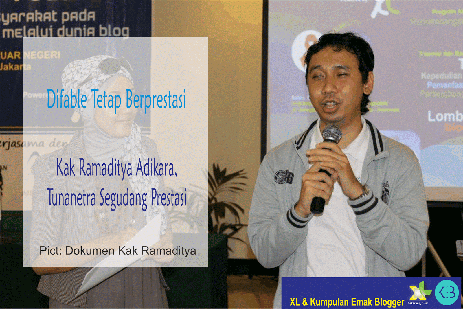 Sebagai penyandang difabel, kita bisa kok berbagi dengan khayalak umum. Berbagi kemampuan yang kita miliki kepada khayalak umum. Contohnya? Banyak. Kak Ramaditya Adikara, seorang tunanetra yang berbagi motivasi dan keahliannya memainkan suling di berbagai seminar. Kak Angkie Yudistia, seorang tunarungu yang berbagi dengan mendirikan Thisable Enterprise, wadah yang memfasilitasi pengembangan bakat untuk penyandang difabel.